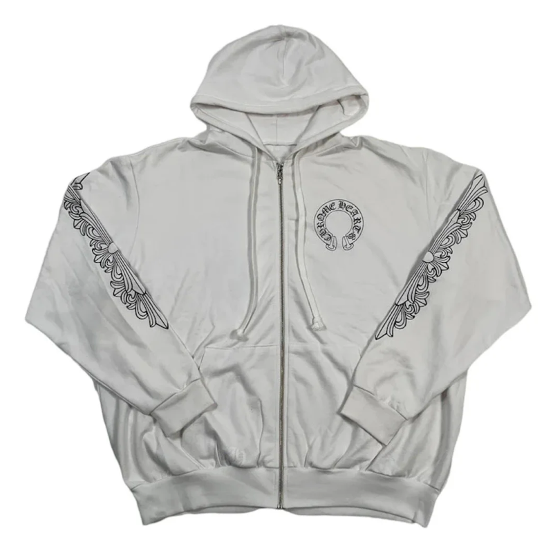 Chrome Hearts Horseshoe Floral Zip Up Hoodie White