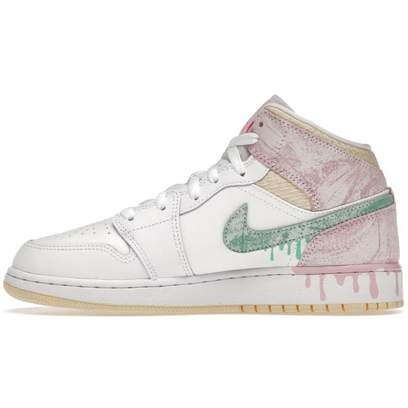 Jordan 1 Mid Paint Drip to dynamiczne i wyraziste buty inspirowane kreatywnością artystyczną oraz streetwearową kulturą graffiti. Ten model łączy klasyczny design Air Jordan 1 z unikalnymi detalami, tworząc oryginalną propozycję dla miłośników sneakersów poszukujących wyjątkowego stylu.