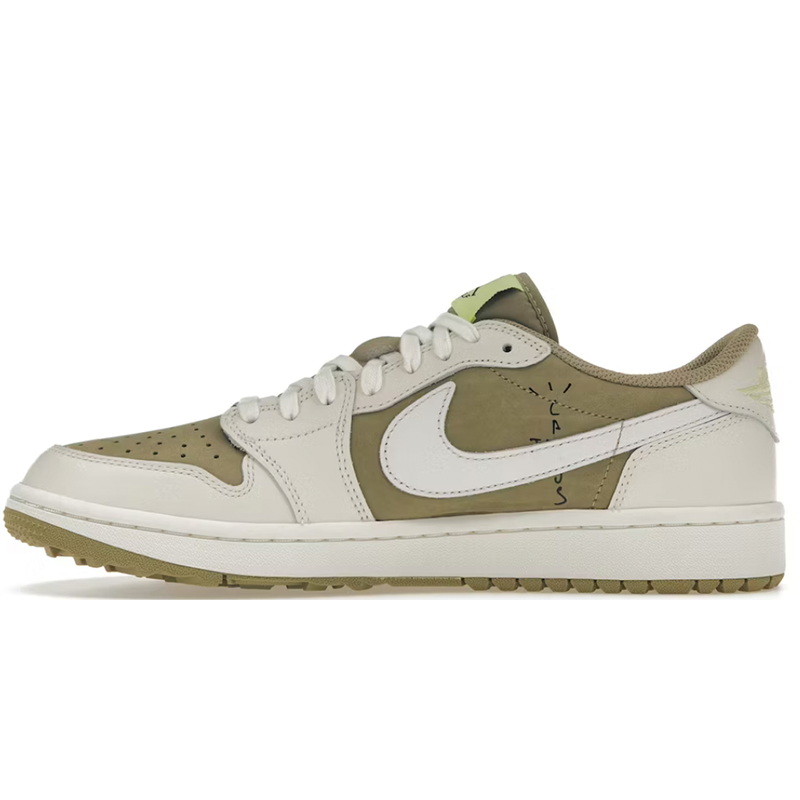 Jordan 1 Retro Low Golf Travis Scott „Neutral Olive” to wyjątkowe buty, które stanowią połączenie klasycznego stylu Jordan 1 z kreatywnym podejściem rapera Travisa Scotta oraz funkcjonalnością butów golfowych. Te sneakersy są nie tylko modnym akcentem, ale także praktycznym obuwiem sportowym.
