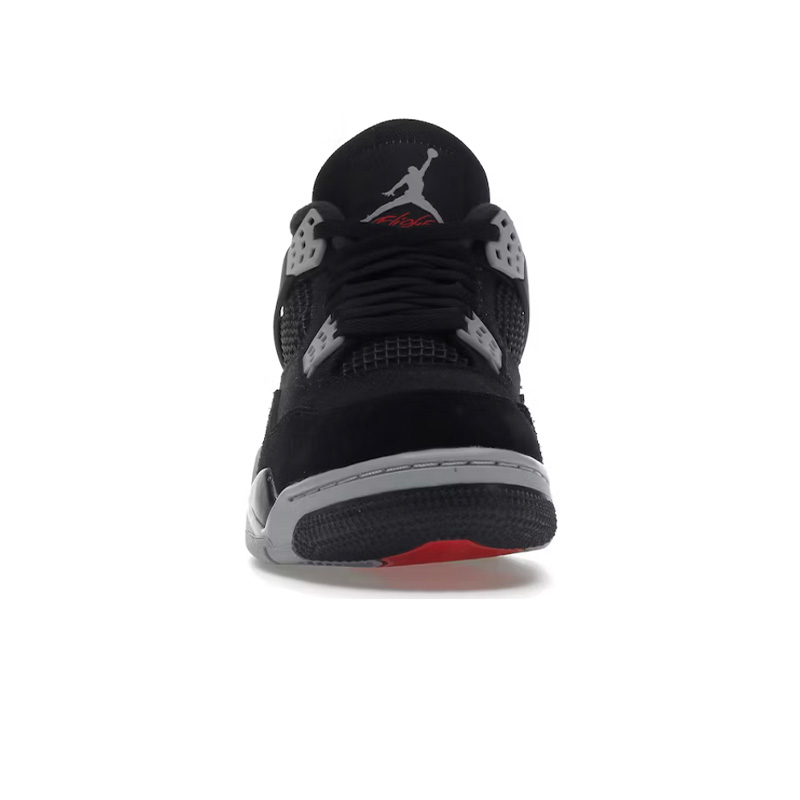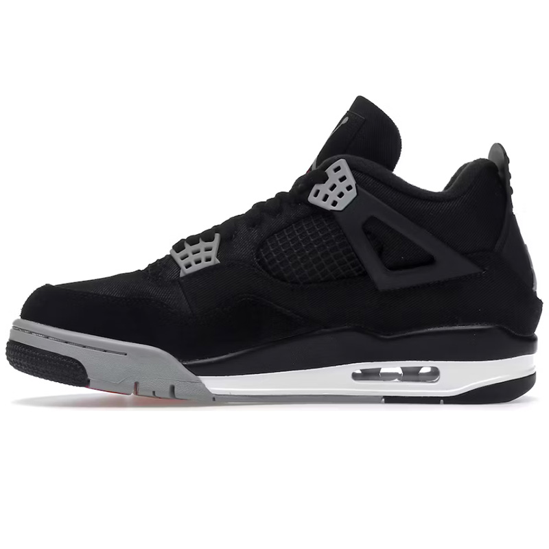 Cholewka butów wykonana jest z wytrzymałego materiału w intensywnym kolorze czarnym, który nadaje im charakterystycznego wyglądu. Charakterystyczne dla modelu Jordan 4 detale, takie jak siateczka na bokach i wyraźne panele, podkreślają ich sportowy charakter i zapewniają odpowiednią wentylację.