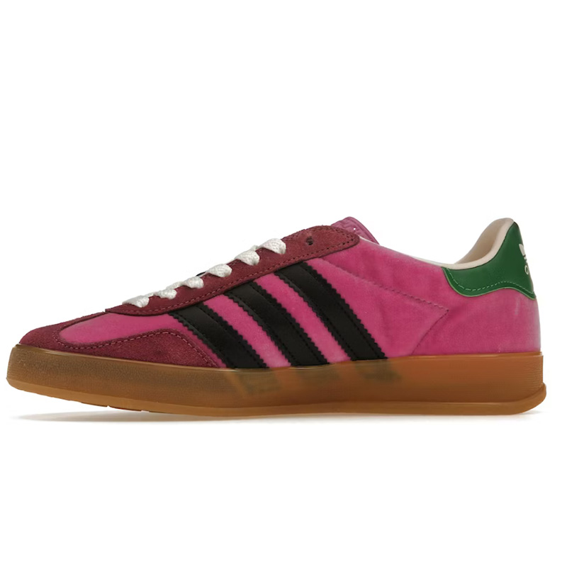 Adidas x Gucci Gazelle Pink (Women’s) wyposażone są w klasyczną gumową podeszwę, która zapewnia doskonałą przyczepność i komfort podczas noszenia. Wyprofilowana wkładka i miękka wyściółka dbają o wygodę stopy przez cały dzień, co sprawia, że buty te są idealne do codziennego użytku.