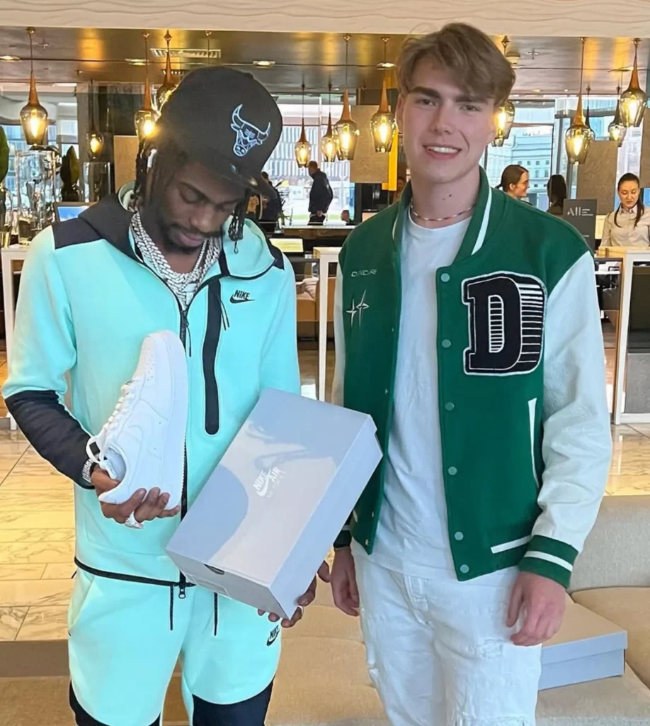 Nasza przygoda z Malikiem jako klientem zaczęła się w 2022 roku. Pamiętam to jak dziś — w słuchawce telefonu usłyszałem znajomy głos i dostałem zadanie: „6 par białych Air Force’ów na dzisiaj”. Zamówienie udało się zrealizować w kilka godzin i od tamtej pory, już od kilku lat, Malik Montana regularnie robi u nas zakupy.