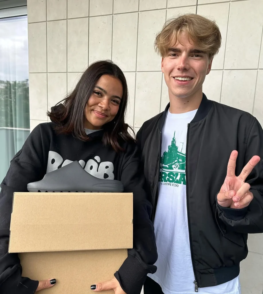 W połowie lipca 2023 roku dostaliśmy bojowe zadanie — realizację zamówienia na dwie pary Yeezy Slides w kolorystyce Onyx. Transakcja przebiegła bardzo sprawnie. Spotkaliśmy się osobiście z Lexy na kawę, zrobiliśmy wspólne zdjęcie i przekazaliśmy jej buty.
